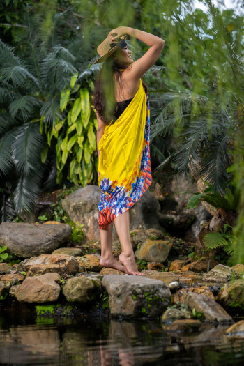 Crafted from high-quality lustrous satin silk, this batik pareo is elegant and relaxed. It features an eye-catching line and tropical floral batik motif, perfectly handcrafted by our trusted local artisans. Style it with whatever you like. Transcend trends and invest in the best for you and your wardrobe.